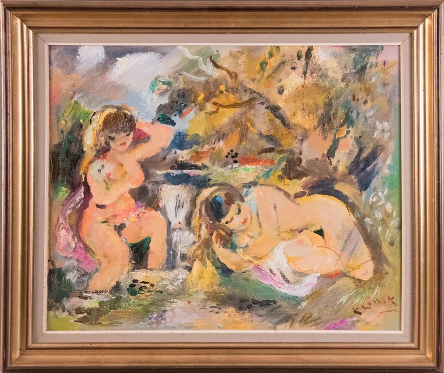 Lot 360. Ludwig KLIMEK (1912-1992). “Deux baigneuses“, huile sur toile signée en bas à droite, H : 50 cm, L : 61 cm. Estimate: 800 € – 1 000 €. Maître Jérôme DUVILLARD QUAI DES ENCHERES. 01/12/23. Sold 800 euro