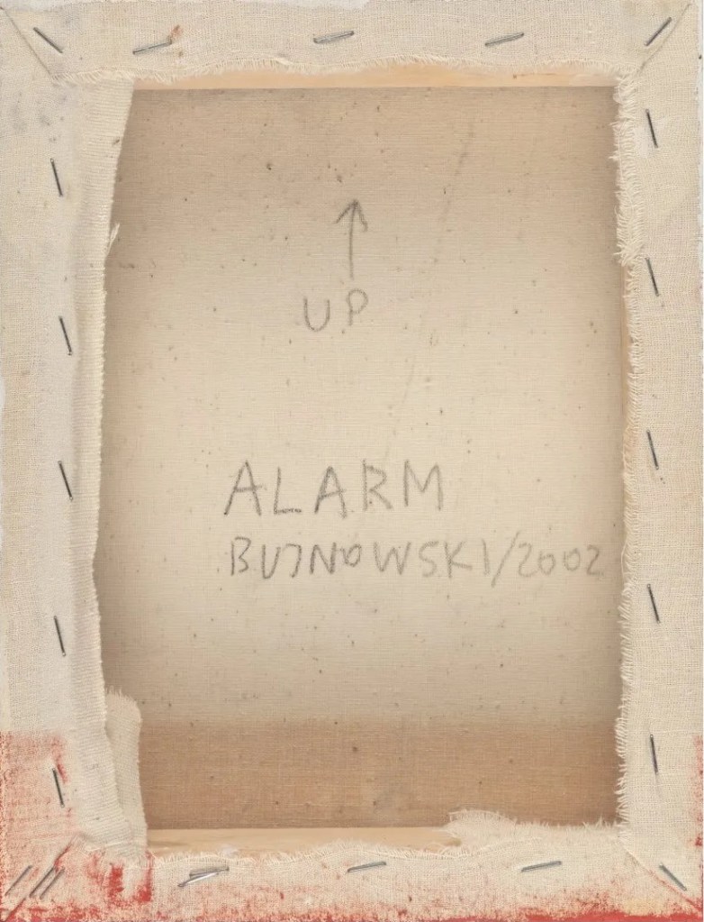 Lot 37112: Rafal Bujnowski (b. 1974). Alarm, 2002. Oil on canvas 10-1/4 x 8 inches (26.0 x 20.3 cm) Signed, titled, and dated on the reverse: Alarm / Bujnowski / 2002 PROVENANCE: Private collection, New York. Estimate $3,000 – 5,000. Heritage. 02/03/23. Sold $1,500