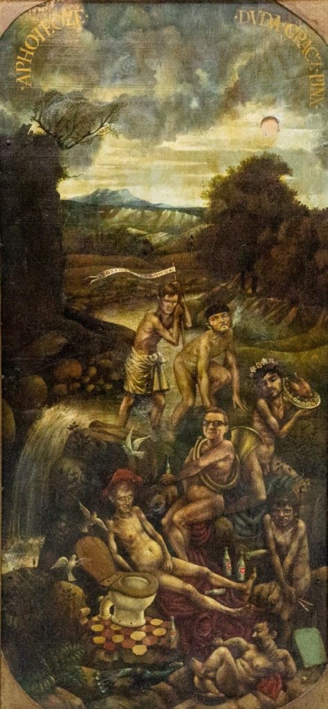 Lot 26.Jerzy Duda Gracz (1941 – 2004). Apotheosis (Apoteoza), 1967, oil on wood board, 39 x 84cm, signed. Opening $12,000. Aviv Gallery. 01/29/23> Not sold