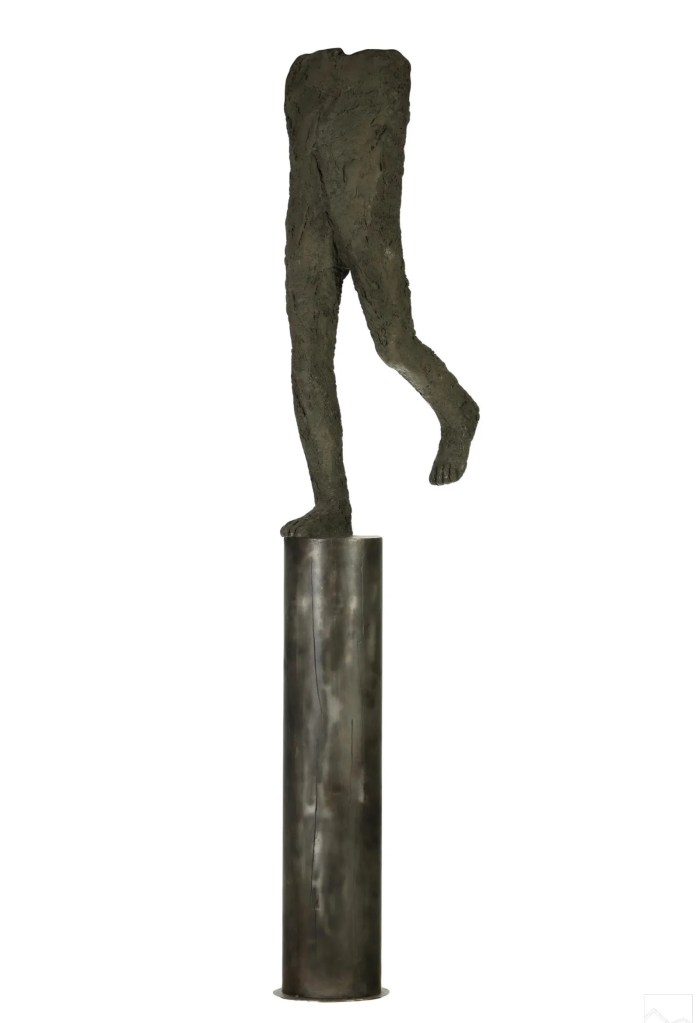 Lot 5. Magdalena Abakanowicz (Polish, 1930-2017). An original mixed media resin composition statue. Titled, “Running,” produced 2002. A life-sized figural work depicting an abstract headless figure, modeled in a running motion with a color and texture mimicking bronze. Artist monogram A signature. Presented on a ceramic tubular plinth with embossed title, date, and the letter A. Dimensions: 83 X 11.75 X 21 in. Estimate $10,000 – 20,000. Hill Auction Gallery. 02/22/23. Sold $50,000