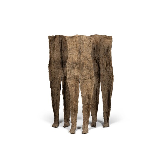Lot 80. Magdalena Abakanowicz 1930 – 2017. Standing Figures [3 Works], each: burlap and resin, each: 65 by 19 by 10 in. 165.1 by 48.2 by 25.4 cm. Executed in 1986. Provenence: Xavier Fourcade, New York. Acquired from the above in 1986 and 1987 by the present owner. Exhibited: Washington, D.C., McIntosh/Drysdale Gallery, Magdalena Abakanowicz, October – November 1986. Estimate $100,000 – 150,000. Sotheby’s. 03/09/23. Sold $110,000 ($139,700-bp)