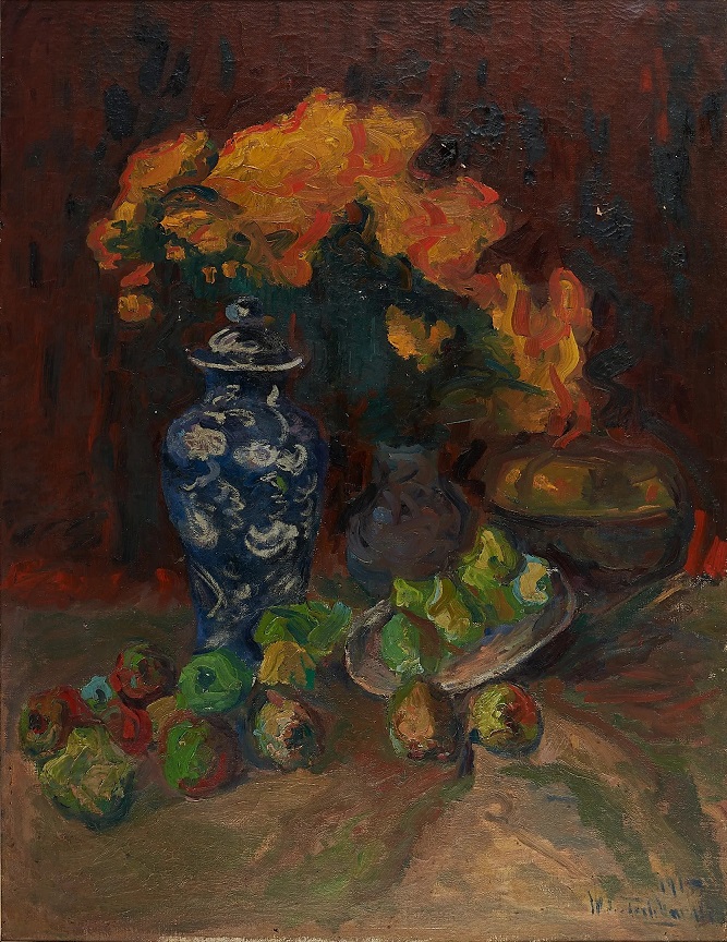 Niezła martwa natura Włodzimierza Terlikowskiego z zaskakującym ‘płomieniem’ kwiatów.
