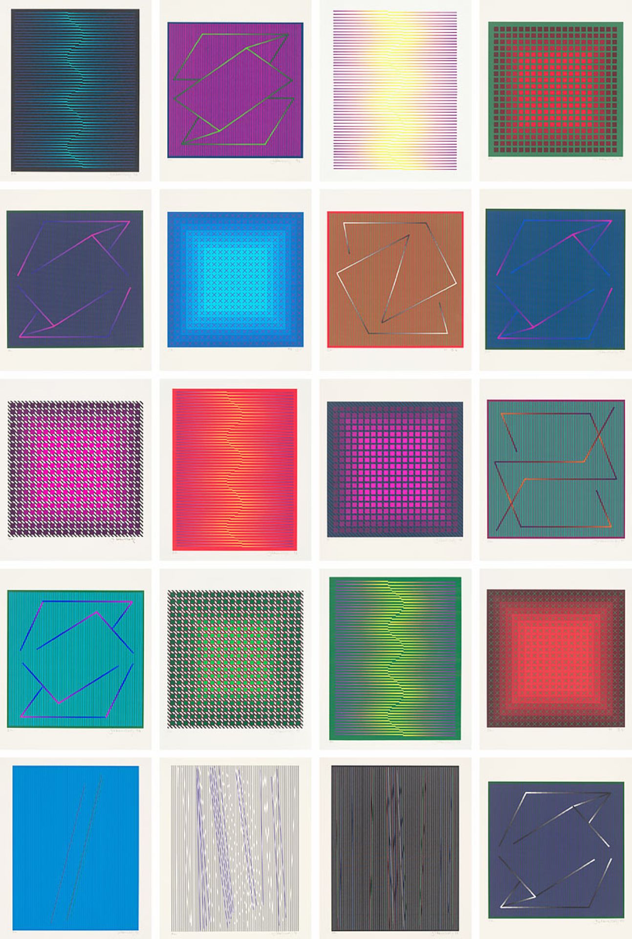 Lot 309. Stanczak, Julian (Borownica 1928 – 2017 Seven Hills, Ohio) u. Harry Rand. Color / Color. Suite in four parts. Washington DC, The Dov Press, 1993. Mappe mit 20 Blatt Farbsiebdrucken auf Arches Vélin, vier (im Zick-Zack gefalteten) Bögen mit Gedichten von Harry Rand, einem Titelbogen u. einem Bogen Impressum. In schwarzer Leinenkassette mit silberner Titelprägung. 39,5 x 31 cm. 16 Blatt signiert, drei Blatt monogrammiert, 18 Blatt datiert u. als “ea” bezeichnet, ein Blatt nummeriert “21/40” sowie vier Blatt verso datiert u. betitelt. Im Impressum zusätzlich signiert u. als “ea” bezeichnet. Die vier Einlegebögen jeweils mit der Folgenummer bezeichnet. Die eingelegten Farbsiebdrucke korrespondieren jeweils mit einem Gedicht Harry Rands, das auf der gegenüberliegenden Seite abgedruckt ist. Estimate 800 euro. Dr. Lehr. 04/29/23. Sold 2,400 euro