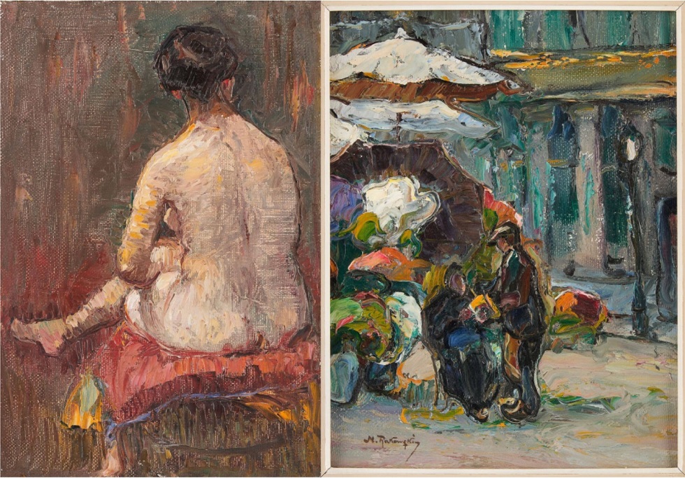 Lot 288. Mecislas RAKOWSKI École polonaise (1882-1947). Oils on canvas (lot of two): “The flower sellers” and “Nude back“. Signed: M. Rakowski and by Mecislas Rakowski. Size: 37 x 27 cm. Estimate 500 – 700 euro. Horta. 05/25/23. Not sold