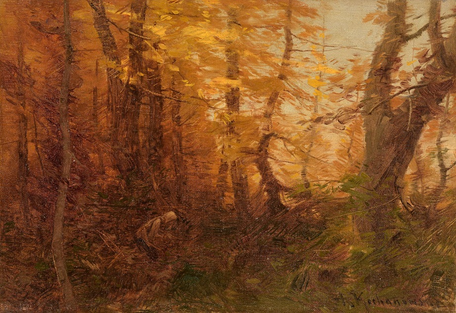 Ta cena sprzedaży była okazyjnie niska. Roman Kochanowski malował wnętrza lasu, bajecznie złociste jesienią, czasami z jeziorkiem, rzeczką dodając pochyloną figurę babiny zbierającej chrust. Ładny obrazek