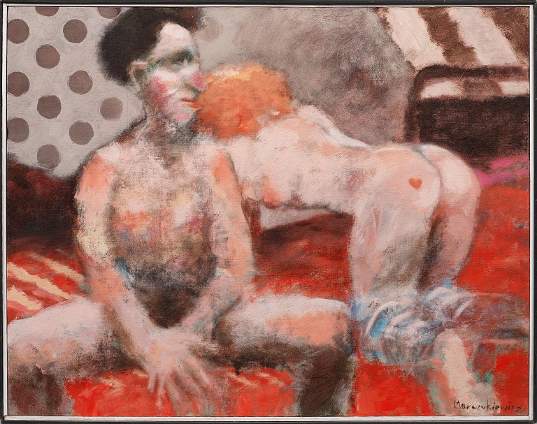 Lot 3114. Adam Marczukiewicz (Geb. 1958 in Olkusz). Bordellszene. Der polnische Künstler Marczukiewicz studierte an der Akademie in Krakau Grafik, Malerei im Atelier von Prof. Zbyslaw Maciejewski und Lithographie bei Prof. Wlodzimierz Kunz. Öl/Lwd.; R. u. sign.; 70 cm x 90,5 cm. Rahmen. Oil on canvas. Signed. Opening 300 euro. Schloss Ahlden. 05/13/23. Sold 300 euro