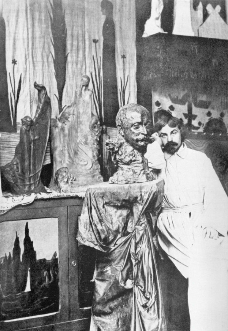 Na powyższej fotografii widzimy nie tylko Bolesława Biegasa stojącego obok rzeźby Henryka Trutschela lecz jako bonus jest oparty na szafce na której stoja inne jego prace. Ta szafka, której panele zostały namalowane przez artystę, była dwa lata temu przedmiotem aukcji we Francji i została sprzedana za blisko 43,000 euro (precyzyjniej, były wtedy na aukji dwie szafki jako jeden lot), https://polishartcorner.com/2020/11/13/boleslaw-biegas-1877-1954-25/.