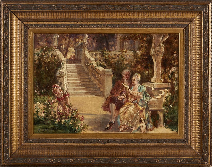 Lot 2887879. PAUL MERWART (POLEN/FRANKRIKE 1855-1902). Family idyll, oil on canvas, signed. About 32×45 cm. Current offer 430 euro. Stockholms Auktionsverk. 06/13/23. Not sold