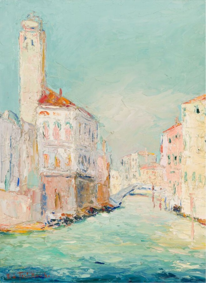 Lot 20. Wlodzimierz TERLIKOWSKI (1873-1951). Palace at Canareggio. Oil on canvas signed lower left. Label on the back of the stretcher, bearing no. 42. 73 x 54 cm. Estimate 2,500 – 3,500 euro. Farrndo. 06/21/23. Sold 2,100 euro