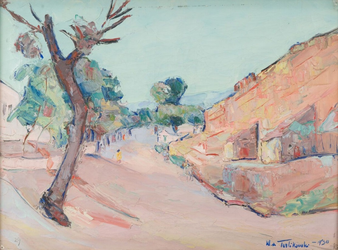 Lot 22. Wlodzimierz TERLIKOWSKI (1873-1951). Alley with buttresses, 1930. Oil on canvas. Signed and dated lower right. Numbered 29 lower left. 61 x 80 cm. Estimate 1,500 – 2,500 euro. Farrndo. 06/21/23. Sold 1,700 euro