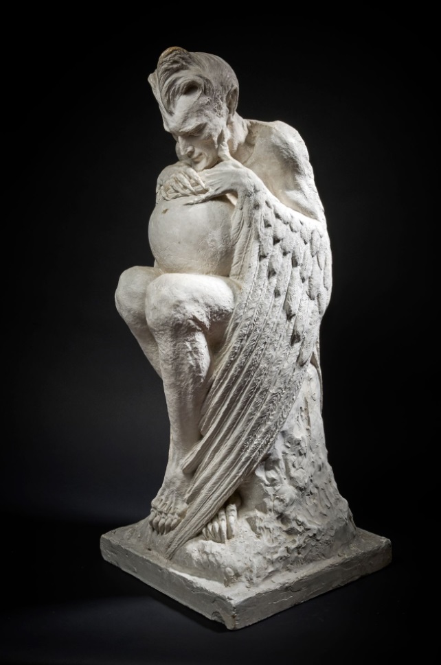 Lot 193. Boleslas BIEGAS (1877-1954). Demon of the Earthly Sphere, 1924. Original plaster, signed and dated 1924 lower left Height: 88 cm. Provenance: acquired at the studio sale on June 30, 1987 at Cornette de Saint-Cyr, Drouot, catalog no. 56. Printing rights for 8 copies. Boleslas Biegas, whose real name was Biegalski, was a Symbolist painter, sculptor, writer and playwright born in 1877 in Koziczyn, near Warsaw, Poland, and died in Paris in 1954. His childhood was marked by the death of his parents and brother, which inclined him towards a meditative, morbid temperament. Hailed as a new Giotto, like Berger, after studying at Krakow’s Academy of Fine Arts, he joined the Viennese Secession, before settling in Paris in his rue de Bagneux studio. His primitive-looking, monolithic, totemic sculpture is reminiscent of dark, spiritual imagery, the cycles of which are numerous: mysterious castles, infinite mysticism, war vampires recalling Balkan legends. Estimate 15,000 – 20,000 euro. Tessier & Sarrou et Associés. 06/23/23