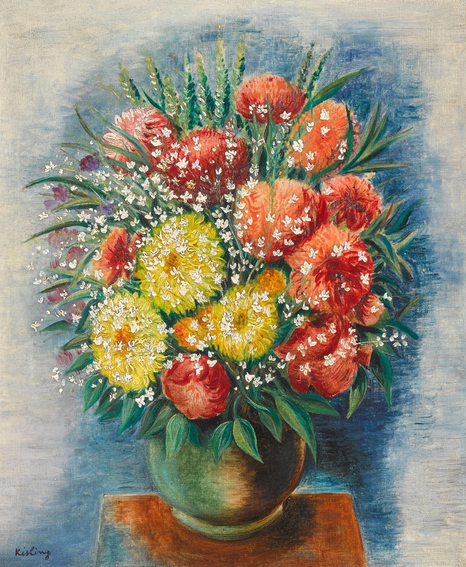 Lot 361. Moïse Kisling 1891 – 1953. Fleurs, signed Kisling (lower left), oil on canvas, 61 by 50 cm. 24 by 19⅝ in. Framed: 82.5 by 71.7 cm. 32½ by 28¼ in. Executed in 1932. This work will be included in the forthcoming Tome IV et Additifs aux Tomes I, II et III of the Moïse Kisling catalogue raisonné currently being prepared by Marc Ottavi. Estimate 50,000 – 70,000 GBP. Sotheby’s. 06/28/23. Sold 69,850 GMP (with bp)