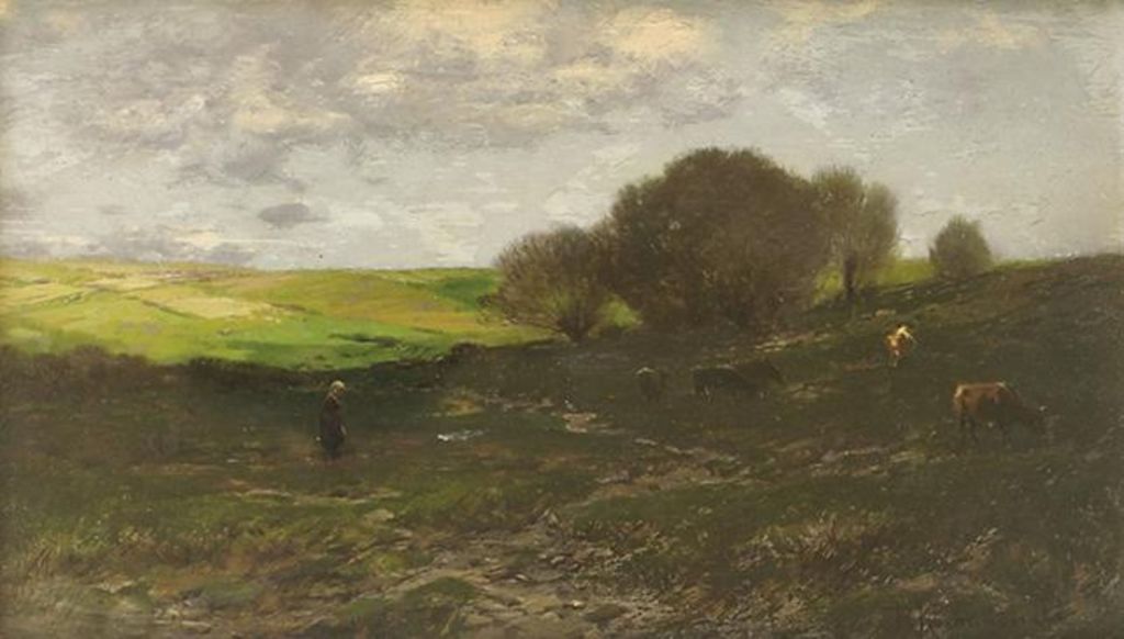 Roman Kochanowski. Landschaft mit Kühen und Hirtin