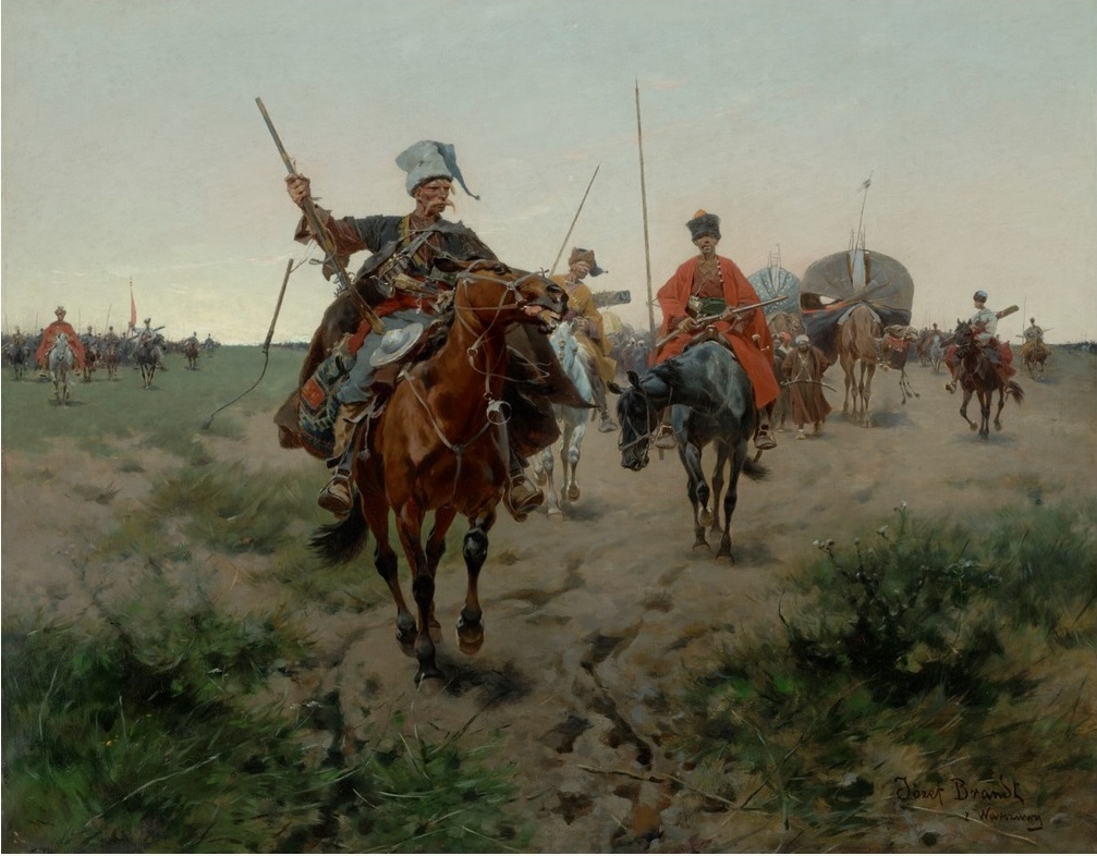 Ten obraz jest dużym wydarzeniem dla kolekcjonerów malarstwa monachijskiego jako obraz najważnejszego monachijczyka. Reklamuję, bo warto by informacja dotarła do jak najszerszego grona kolekcjonerów tego malarstwa, którzy powinni zainteresować się tym obrazem u samego źródła by nie próbować potem go odkupić ze 100% marżą z polskiego domu. Dodam do informacji opublikowanej na stronach Christie’s, że ta praca jest opublikowana w kolorze jako ‘Tabor’ na stronie 66-tej w sławnej (bo pisanej z błędami) książce Hansa-Petera Buhlera „Józef Brandt, Alfred Wierusz Kowalski i inni. Polska szkoła monachijska” (wydawnictwo Amber, 1997).