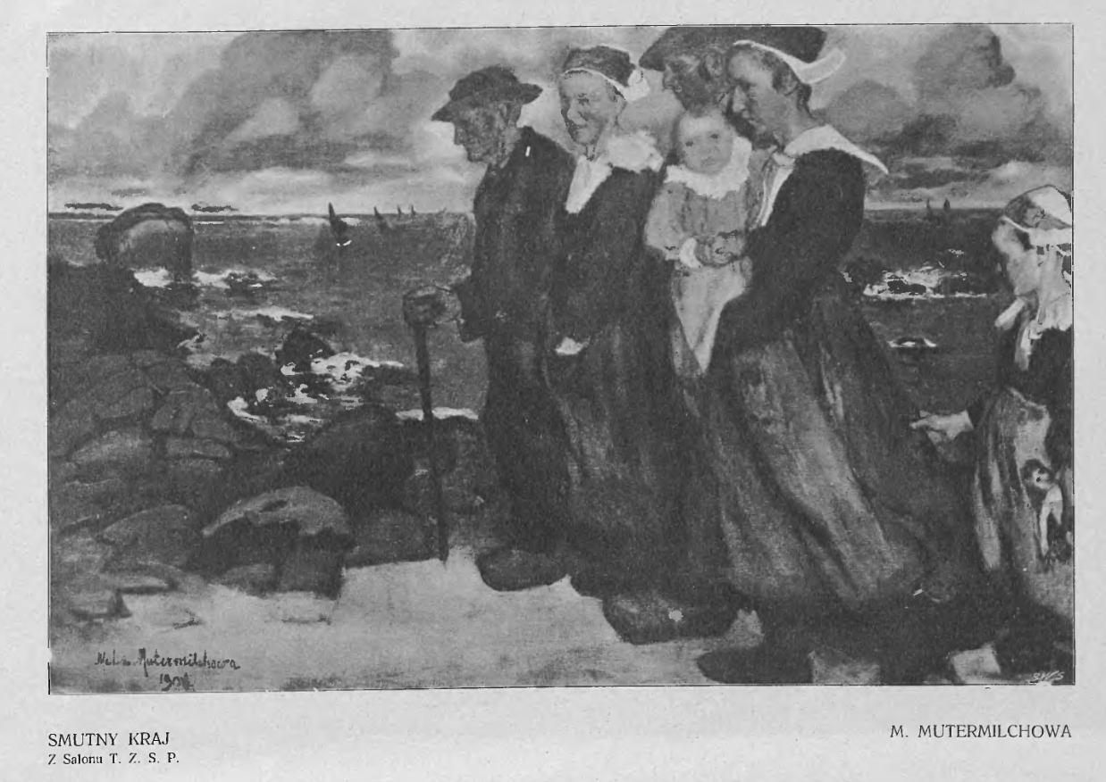 Trzy wczense prace Meli Muter. Portret syna artystki, namalowany na wzór portretu renesansowego, został opublikowany w 1907 roku. Z tego samego roku mamy poniżej Smutny kraj (1906), wielopostaciowy pochód zafrasowanych osób. KIlka lat później artystka namalowała dość groteskowy(?) Taniec (1913). Takich prac nie ma obecnie na rynku lecz kto wie co będzie w przyszłości bo gdzieś mogą wisieć.