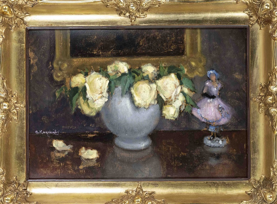 Lot 7477. Kazimierz Alchimowicz (1840-1916), Sheherazade telling a story, 1902, oil/canvas, doubled, canvas inscribed on verso in Polish Composed and begun by Prof. Wojciech Gerson and completed in 1902 by Kazimierz Alchimowiez [Skomponwany i zaczety pzez s. p. Prof. Wojciecha Gersona a dokonczony przezb Kazimierza Alchimowieza w roku 1902], remains of a Warsaw exhibition label on verso of stretcher, 93.5 x 62.5 cm, framed 109.5 x 76 cm, the renowned Polish painter Wojchiech Gerson (1831-1901) was a professor at the Warsaw Academy of Art from 1872-1896 and at the St. Petersburg Academy of Art from 1878. He influenced a whole generation of neo-romantic Polish genre and landscape painters during the Russian occupation. Among his students from 1869 was Casimir Alchimowicz, who is considered one of the last Romantics of Polish painting. Opening 10,000 euro. Hitoria Auktionshaus. 08/29/23. Sold 14,000 euro