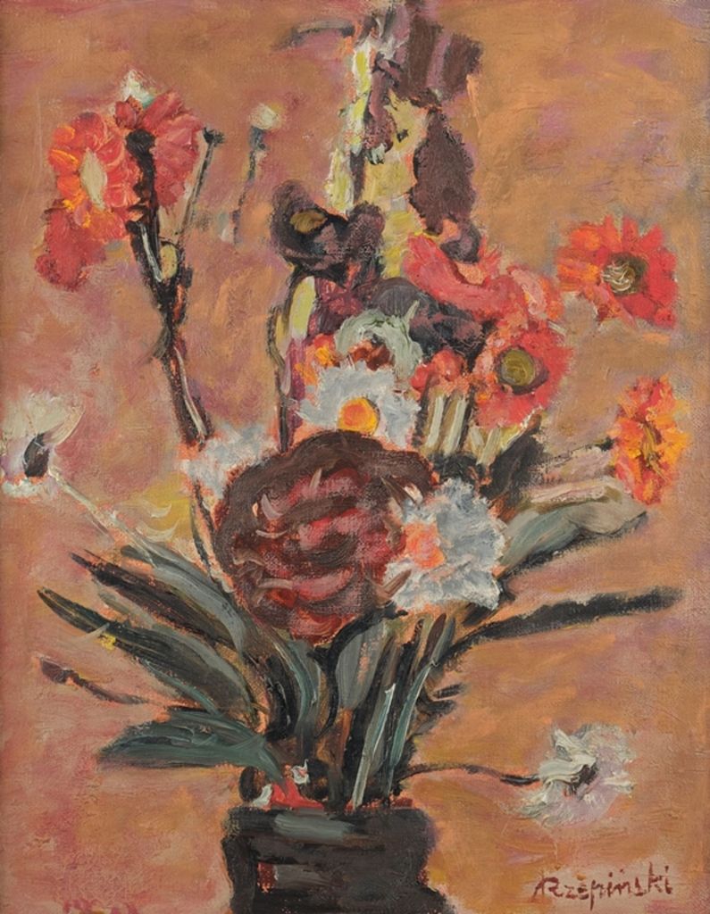 Lot 1633. Rzepinski, Czeslaw(1905 Strusowo – 1995 Krakau, polnischer Maler und Pädagoge, Vertreter des polnischen Kolorismus). “Blumenstillleben”, Öl auf Leinwand, signiert unten rechts Rzepinski, 41 x 33.5 cm. Opening 800 euro. Pluckbaum. 10/14/23. Not sold