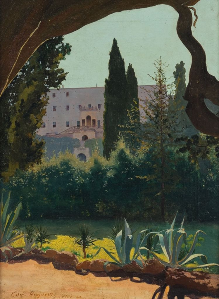 Lot 1469. Grajnert, Edward(1877 Warschau – 1907 Łódź, Studium an der Krakauer Akademie der Schönen Künste), Villa d´Este,Öl auf Leinwand, signiert, bezeichnet und datiert Edw. Grajnert Villa d´Este 1902, 45.5 x 34 cm. Opening 300 euro. Pluckbaum,. 10/14/23. Sold 1,900 euro.