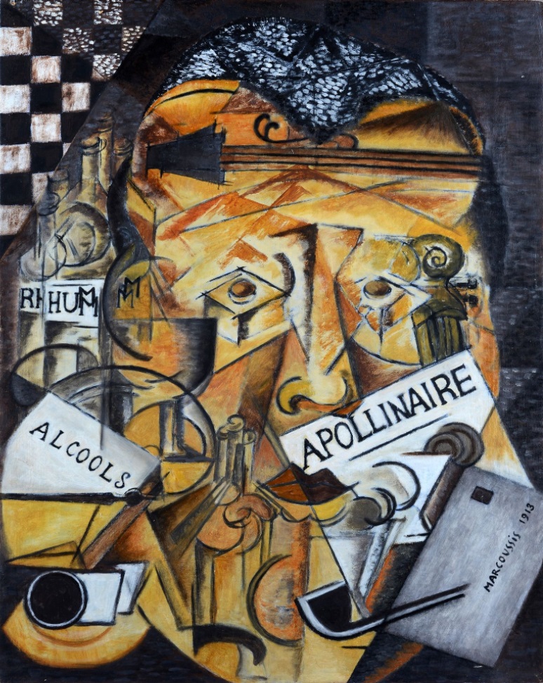 Ważny obraz kubistyczny z dorobku Markusa. Tytuł pracy na postawie nalepki paryskiej Galerie Kriegel to ‘Portrait de Apollinare‘.