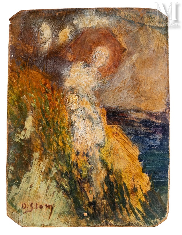 Lot 123. SLOMSZYNSKA Olga dite Olga SLOM (Suisse 1881- France 1941). La côte rocheuse. Huile sur panneau, 30 x 22,5 cm. Signé en bas à gauche “O. Slom”. Estimate 400 – 600 euro. Millon. 10/24/23. Not sold