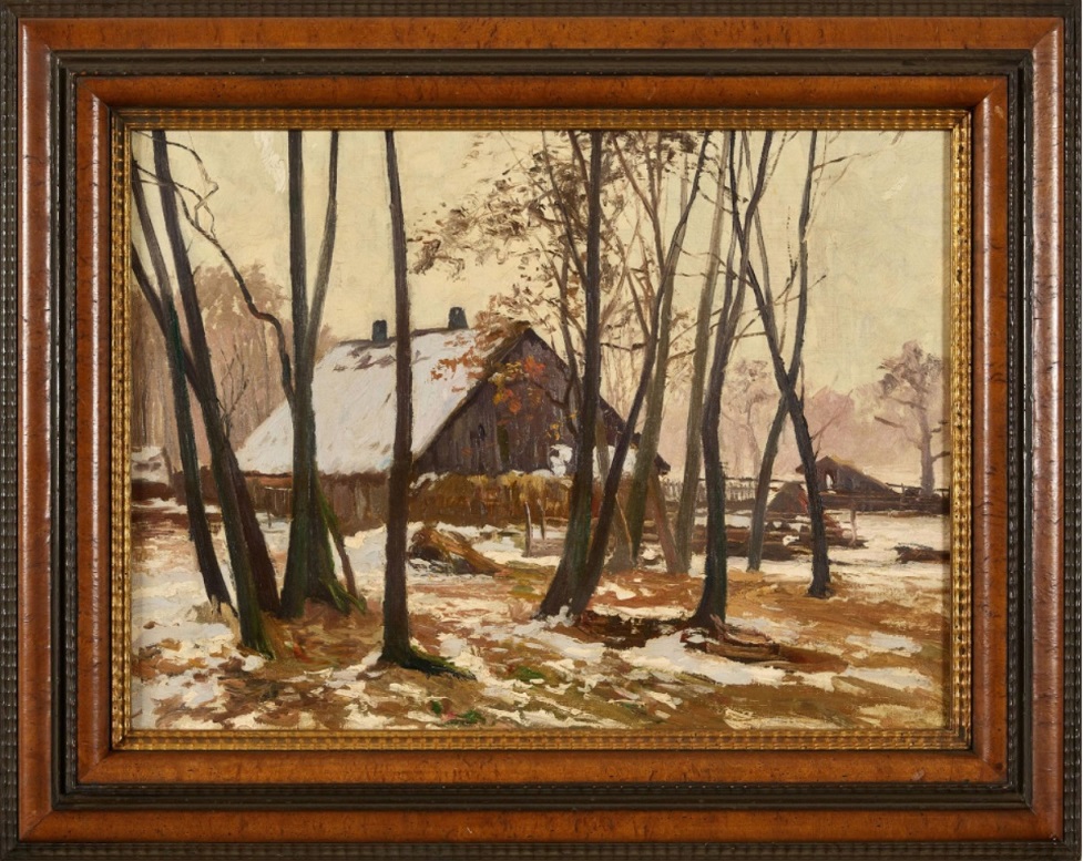 Lot 359. WYWIORSKI, MICHAL GORSTKIN (Warsaw 1861 – 1926 Berlin). Late autumn landscape with a farmhouse. Oil on canvas, verso sig. u. dat. 1911, 48,5 x 66 cm. Estimate CHF 2,400. Dobiaschofsky. 11/10/23. Sold CHF 2,000