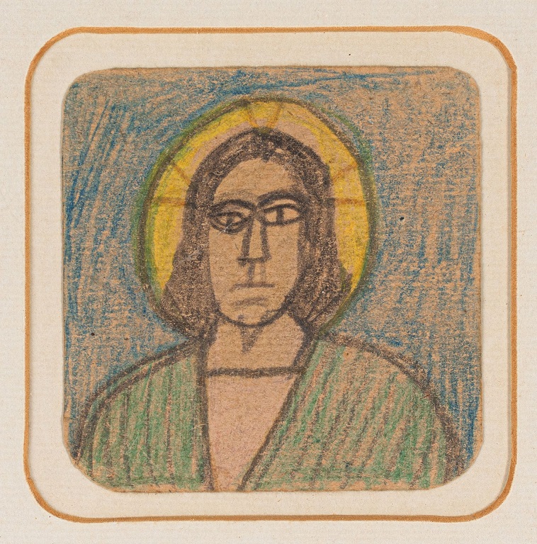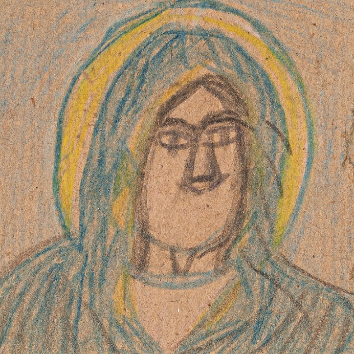 Lot 1044. Nikifor d. i. Epifaniusz Drowniak Krynica-Zdrój, 1895 – Folusz, 1968. Versch. 2 works: Saint. Coloured pencil on cardboard. Private collection, Hessen. Nagel. 02/08/24. Sold 850 euro