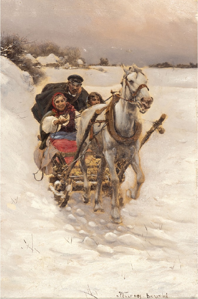 Lot 205. COPIA DE ALFRED WIERUSZ KOWALSKI. Promenade joyeuse. Tableau S.XIX. Huile sur toile, 1ère moitié du 20e siècle. Dimensions : 31 x 20,5 cm. Estimate 250 euro. Abalarte Subastas. 02/14/24. Sold 375 euro