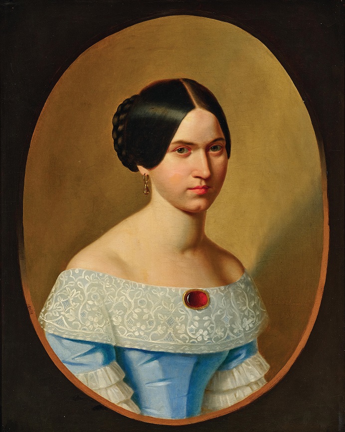 Lot 86. Jan Kanty Ignacy Maszkowski (Chorostków 1794-1865 Barszczowice/Lemberg). Bildnis einer Dame im blauen Kleid mit Spitzenkragen, signiert, datiert Maszkowski 1848, Öl auf Leinwand, 66,5 x 53,5 cm, gerahmt. Estimate 1,200 – 1,500 euro. Dorotheum. 02/21/24. Sold 2,400 euro