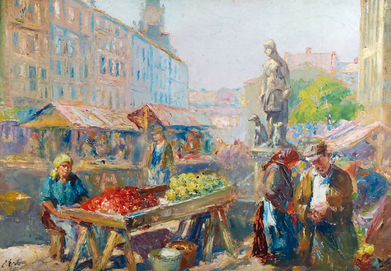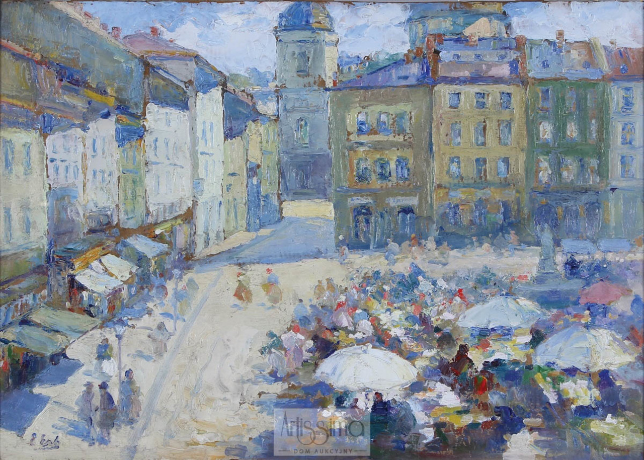 Powtarzany na obrazach E.E. w nieskończoność ten sam motyw-sceny targowe z dwoma lub trzema lwowskimi przekupkami na pierwszym planie, mogą faktycznie irytować i w końcu nawet nurzyć oglądającego, sugerując wręcz lekceważenie ze strony twórcy i chęć szybkiego zysku, niskim nakładem pracy.
