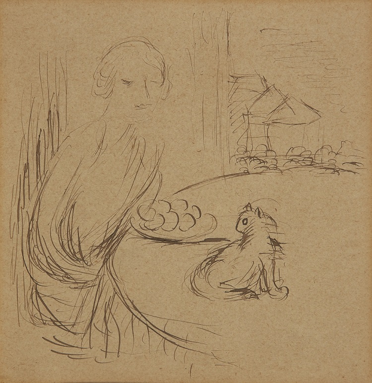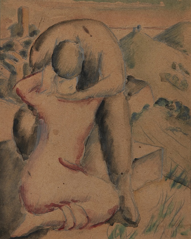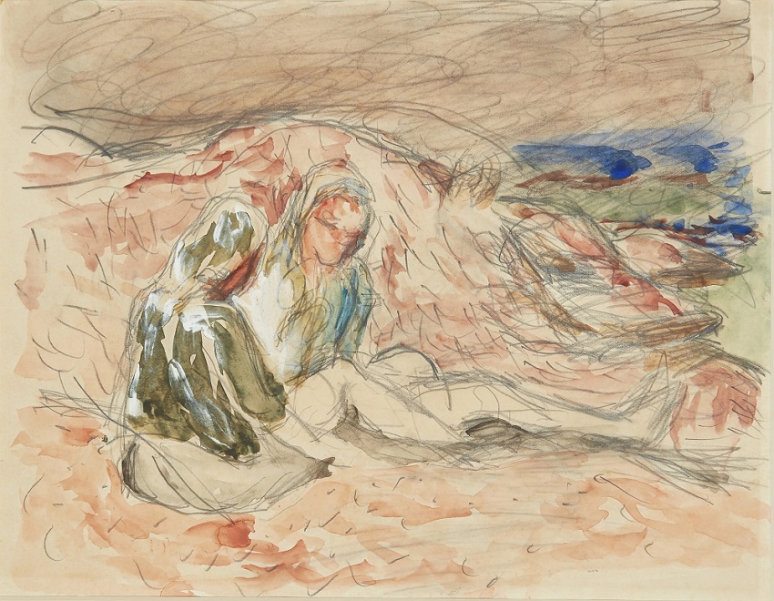 Lot 167. Henryk Gotlib, Polish/British 1890-1966 – Val di Costello. Two women resting in a field; watercolour and pencil on paper, 19.3 x 25 cm: together with 2 other works on paper by the same artist, ‘Woman and cat‘, ink on paper, 15.5 x 15.1 cm, cat.67 (2) and ‘Still life with fruit‘, pencil on paper, 10.7 x 9.4 cm. Provenance: Estate of the Artist. Estimate: £300 – £500. Roseberys. 03/12/24. Sold 440 GBP