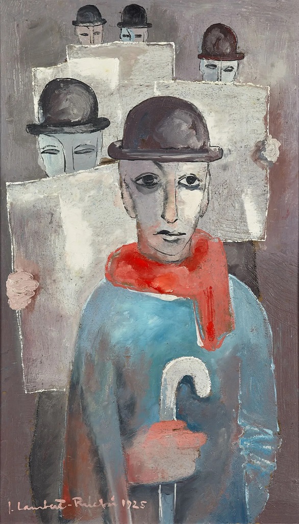 Lot 110. ATELIER LAMBERT-RUCKI. Personnages dans la ville. Huile sur carton h:79.0 CM, d:64.0 CM. Porte une signature en bas à droite “Lambert-Rucki”. Estimation : 2 000 € – 3 000 €. Sold 1,900 euro