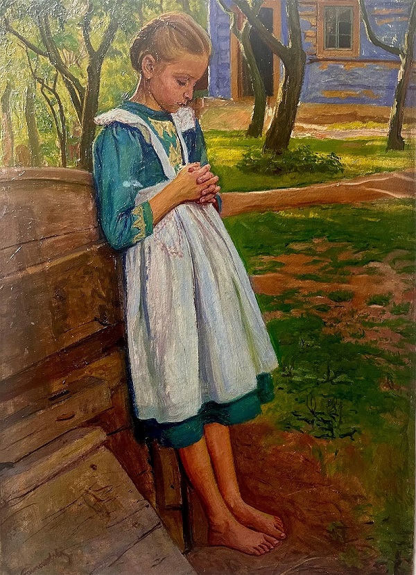 Artysta o bogatym życiorysie artystycznym (uczeń Gersona, Malczewskiego Wyczółkowskiego), Akademia w Krakowie, Monachium, Paryż, Włochy i sporej aktywności wystawienniczej. Wydawałoby mi się, że powinny być znane jakieś jego prace o charakterze muzealnym a tych chyba nie ma. MNW posiada jeden drobny jego rysunek a MNK chwali sie kilkoma pocztówkami jego prac. Młodopolski olej z zamyśloną bosą dziewczynka jest uroczy. W sumie ładny obraz.