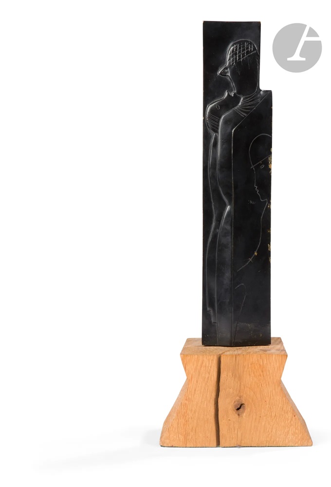 Lot 182. Jean LAMBERT-RUCKI (1888-1967). Embracing couple, after a model designed around [1927]. Proof in patinated bronze. Post-mortem edition cast. Signed on the back. Publisher’s mark JDV. La Plaine foundry stamp – Numbered 3/8. Wooden base. (Scratches to the patina, bumps to the edge). Bronze height: 29 cm. Estimate 2,000 – 3,000 euro. Ader. 05/16/24. Passed