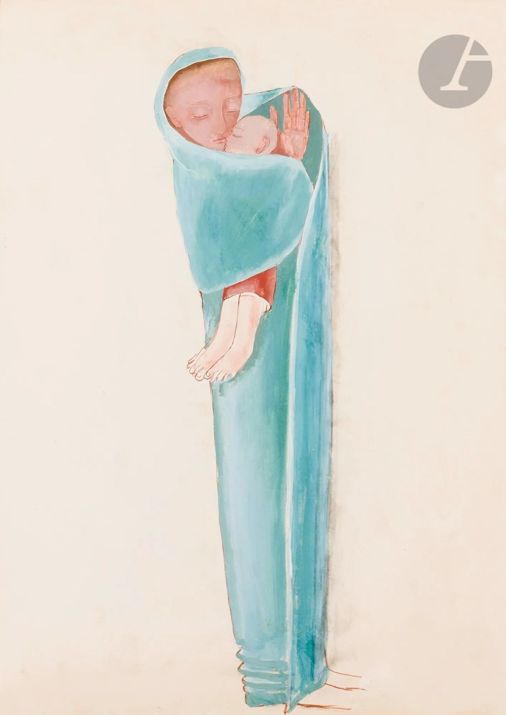 Lot 183. Jean LAMBERT-RUCKI (1888-1967). Nativity (recto) – Virgin and Child (verso), 1935. India ink – Gouache. Signed and dated upper right (Nativité). 64 x 45 cm. Estimate 1,500 – 2,000 euro. Sold 1,600 euro