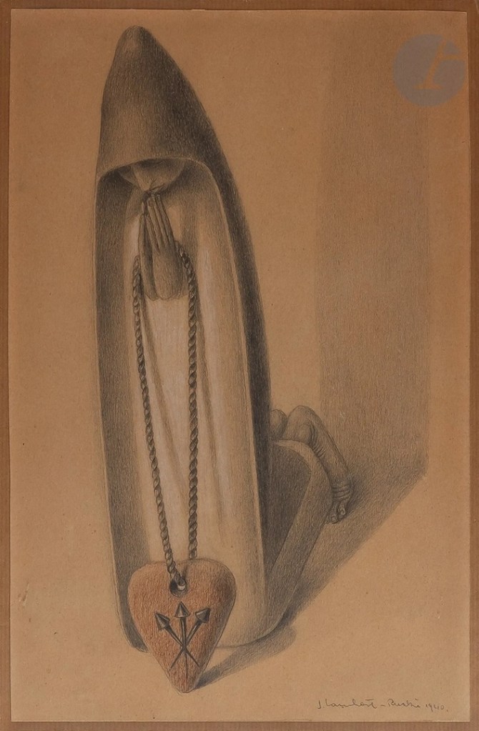 Lot 184. Jean LAMBERT-RUCKI (1888-1967). Communiante, 1940 .Graphite, chalk and red pencil. Signed and dated lower right. 32.5 x 20.5 cm. Estimate 1,500 – 2,000 euro. Passed