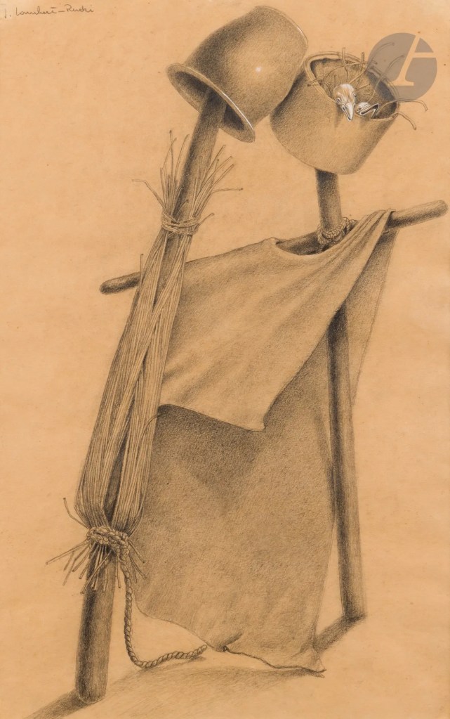 Lot 185. Jean LAMBERT-RUCKI (1888-1967). Scarecrow. Graphite and gouache highlights. Signed upper left. 45 x 28 cm. Estimate 800 – 1,000 euro. Sold 800 euro
