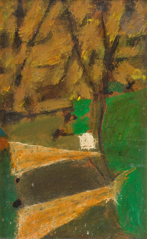Lot 218. Piotr POTWOROWSKI (1898-1962). Landscape, 1961 Oil on cardboard. Monogrammed, dated and dedicated to Géraldine at foot. 34 x 22 cm Provenance : Harry Morton-Colville Collection, Paris. Estimate 2,000 – 3,000 euro. Ader. 05/15/24. Sold 2,500 euro