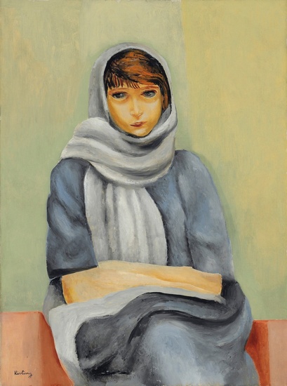Lot 57. MOÏSE KISLING (1891-1953). Jeune Breton, signed ‘Kisling’ (lower left), oil on canvas, 29 1/16 x 21 9/16 in (73.8 x 54.7 cm). Painted in 1931. The authenticity of this work has been confirmed by Marc Ottavi. This work will be included in the forthcoming Volume IV et Additifs aux Tomes I, II, et III of the Moise Kisling catalogue raisonné currently being prepared. Estimate $70,000 – 90,000. Bonhams. 05/16/24. Sold $89,400.