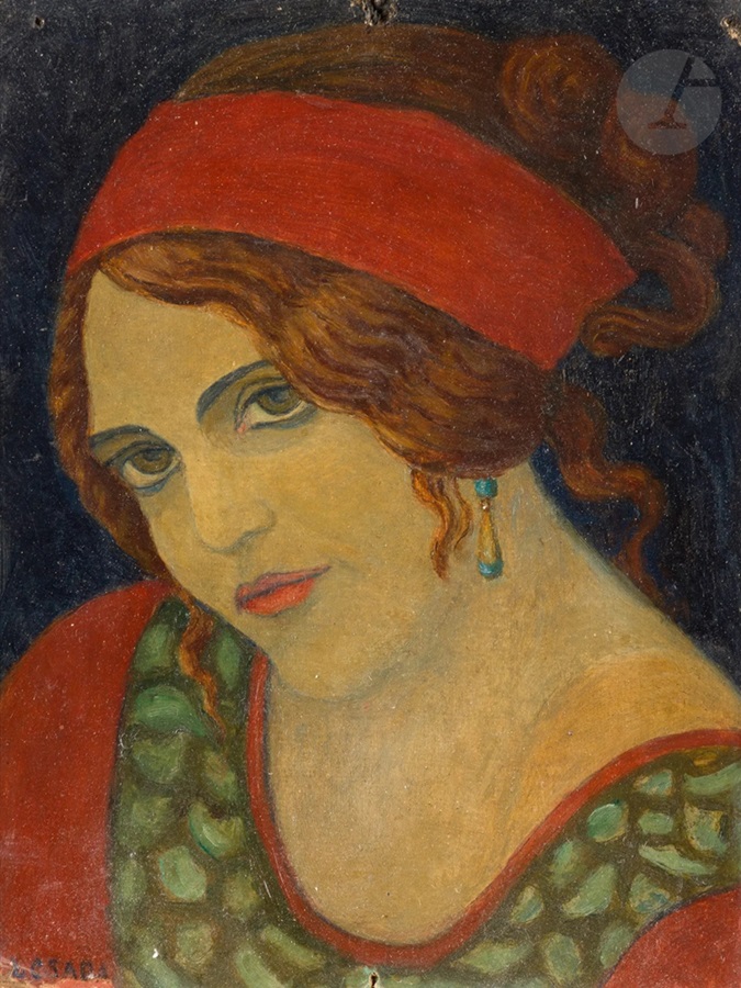 Lot 176. Lilla (Helena) CIECHANOWSKA (SAGA) (1884-?). Self-portrait. Oil on cardboard. Signed lower left. (Wear). 27.5 x 20.5 cm. Her husband, Jan Danysz, physician, biologist and head of department at the Pasteur Institute, was sometimes appointed unofficial Polish ambassador. Thanks to his wife, he maintained strong links with Polish emigration, welcoming artists to his villa “Bellevue” in Sèvres. Estimate 150 – 200 euro. Ader. 05/16/24. Sold 1,100 euro