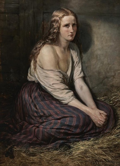 Lot 74. Elisabeth Jerichau Baumann (b. Warsaw 1819, d. Copenhagen 1881). A young woman sitting in a stable. A paraphrase of the Penitent Mary Magdalene. Unsigned. Oil on canvas. 109×80 cm. Provenance: Master of the Royal Hunt, Baron Preben Vilhelm Bille Brahe (1852–1924) and his wife Baroness Anna Sophie Elisabeth Bille Brahe, neé Brun (1855–1930). In their time the painting was located at Svanholm Manor. Thence by descent. Bruun Rasmussen auction 888, 2019 no. 26, ill. p. 46. Estimate 40,000–50,000 DKK ($5,800–$7,200). Rasmussen. 06/10/24. Passed