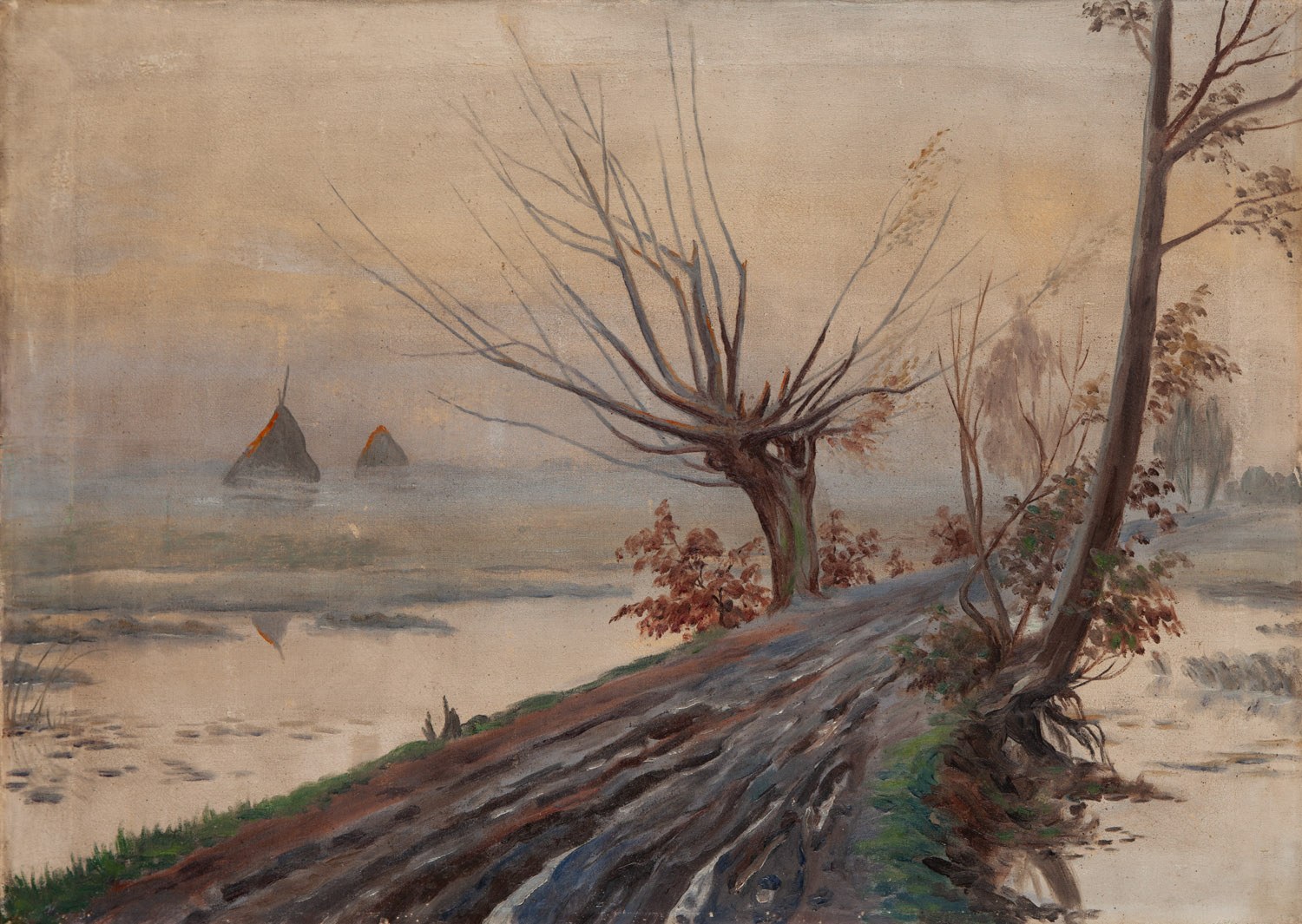 Malarz nieokreślony, polski (XX wiek), Pejzaż z wierzbą