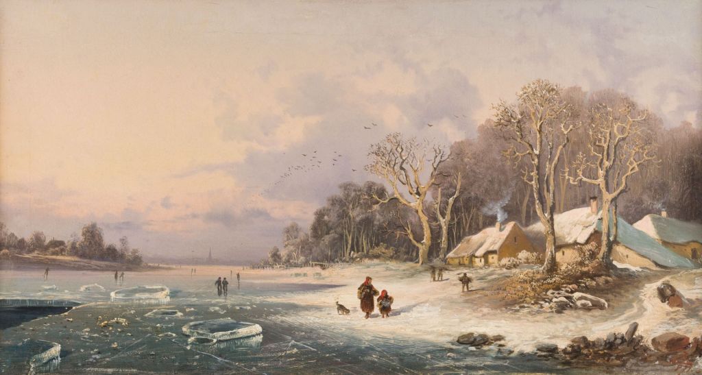 Lot 23338. WIKTOR ADAM MALINOWSKI 1829 Lublin – 1892 Warsaw .TWO WORKS: WINTER LANDSCAPE WITH FROZEN LAKE. 1872. WINTER LANDSCAPE. 1871. Oil on wood. Oil on canvas. Each 37 x 69 cm (F. 47 x 78 cm). Signed and dated ‘AW Malinowski’ lower left, second painting indistinctly monogrammed lower right. Verso: each with number labels. Each restored. Each framed. Opening 2,000 euro. Hargesheimer Kunstauktionen Düsseldorf. 09/13/24. Sold 3,000 euro