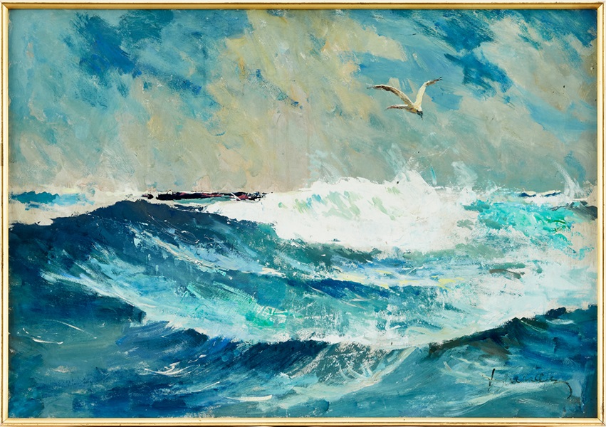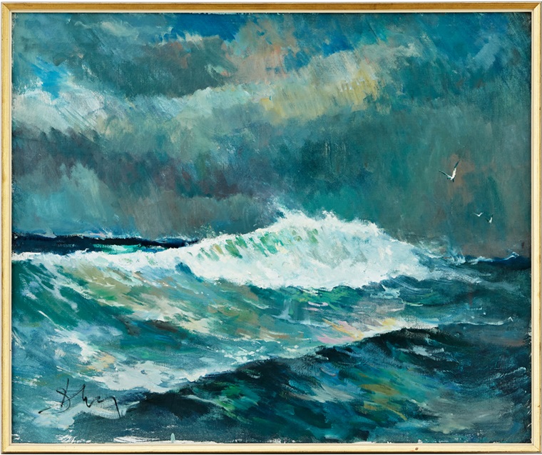 Lot 311. Antoni Suchanek Polen 1901-1982. Vågor. Signerad Suchanek. Olja på duk, 82 x 99 cm. Estimate 8,000 – 10,000 SEK (€ 710 – 900). Sold SEK 21,000
