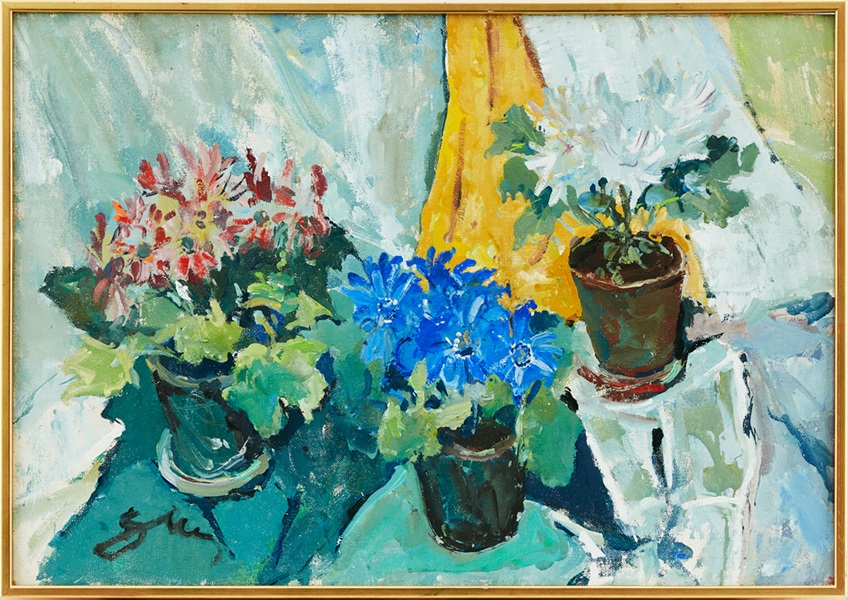 Lot 308. Antoni Suchanek Polen 1901-1982. Blomsterstilleben. Signerad Suchanek. Olja på pannå, 68,5 x 98 cm. Estimate 8,000 – 10,000 SEK (€ 710 – 900). Sold SEK 19,000