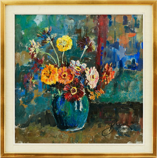 Lot 310. Antoni Suchanek Polen 1901-1982. Blomsterstilleben. Signerad Suchanek. Olja på pannå, 61,5 x 61 cm. Estimate 8,000 – 10,000 SEK (€ 710 – 900). Sold SEK 14,000