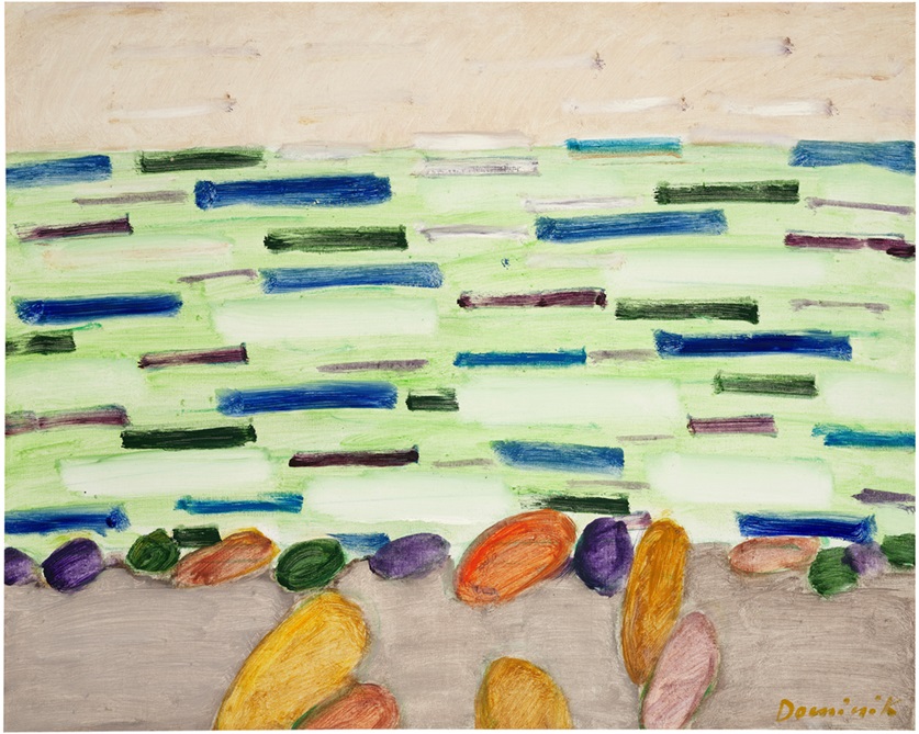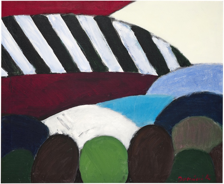 Lot 43. Tadeusz Domenik (Szymanow, Poland, 1928-2014 Warsaw). Untitled, signed Domenik, acrylic on canvas, 80 x 100 cm, framed. Provenance: Directly from the artist; Private Collection, Vienna. Estimate 4,000 – 7,000 euro. Dorotheum. 09/18/24. Sold 5,500 euro