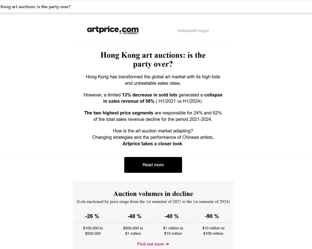 Cały artykuł do przeczytania i analizy pod linkiem: https://www.artprice.com/artmarketinsight/a-closer-look-at-hong-kongs-market-slowdown-and-its-key-markers?utm_medium=email&utm_source=FASTMAIL_ARTPRICE-NL-2024-38&utm_campaign=ARTPRICE-NL-2024-38