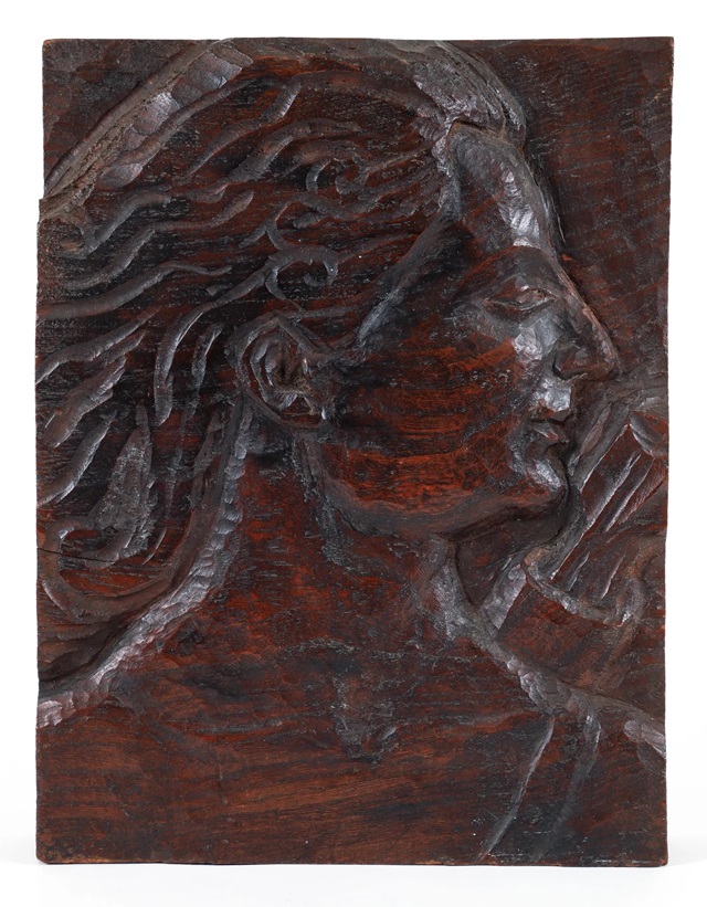 Lot 186. Glicenstein, Enrico (Henryk) (Polish/American, 1870-1942), Beatrice as Diana, 1925-1926, cherry wood bas-relief, unsigned, 15.5 x 11.75 x 2.75 inches. A moving image of the artist’s daughter as the hunter Diana, made before he moved to America. Catalogue Raisonne number 98. A copy of the catalogue raisonne is included with purchase. Exhibited: Anderson Galleries, New York, 1928 (see NY Times review). Provenance: The Estate of Hugo Dreyfuss, the son-in-law of the artist (married to Beatrice Glicenstein). Estimate $400 – 600. Sold $7,500