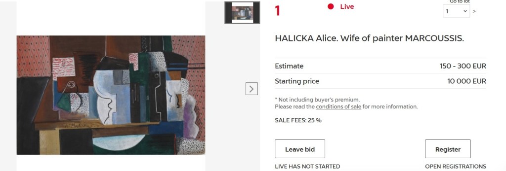 Bardzo słuszna uwaga domu aukcyjnego, że niejaka Alicja Halicka była jedynie żoną Louisa Marcoussisa (Ludwika Markusa) i stąd, jak się domyślam, obecność tej pracy w katalogu.