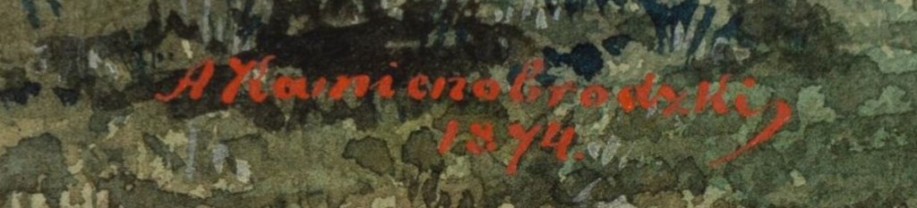 Lot 627. Alfred KAMIENOBRODZKI (Tarnów, Poland 1844- Lviv, Ukraine 1922). Park in Lviv, Ukraine. Watercolor and white highlights, signed and dated 1874 lower left. H_31.5 cm W_26 cm (view). Estimate 150 – 200 euro. Metayer-Mermoz. 03/16/25. Sold 500 euro